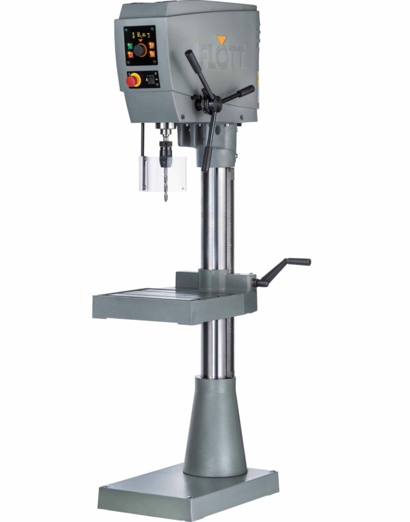Maskinens solide konstruksjon med søyle på 110 mm diameter og stor arbeidsflate på 420 x 340 mm sikrer vibrasjonsfri drift og høy stabilitet selv under tunge operasjoner. Den digitale OLED-skjermen gir nøyaktig visning av borehastighet og dybde, og den hurtigjusterbare stoppringen gjør det enkelt å oppnå repeterbare resultater.
