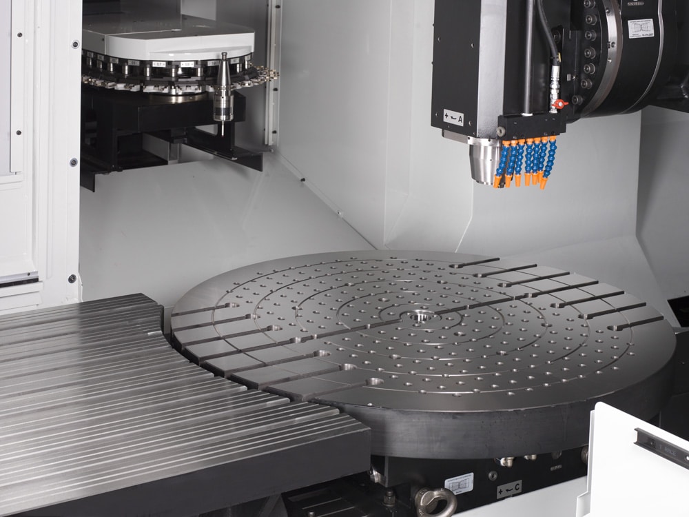 Kan konfigureres med vippbart hode og roterende bord, eller med 2-akse roterende og vippbart hode, for avansert 5-akset maskinering.