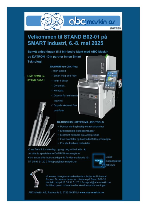 Invitasjon til ABC-Maskins DATRON stand B02-01 på SMART Industri 2025